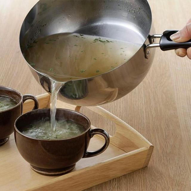 注ぎ口が両側に付いており、汁物を注ぐときに便利です。