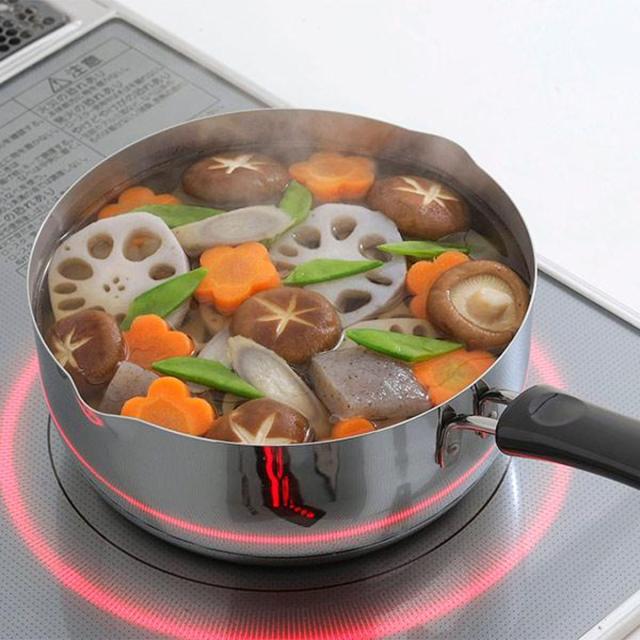 ●丈夫なステンレス製で、ガス火・IH調理器(200v)両方に対応しています。