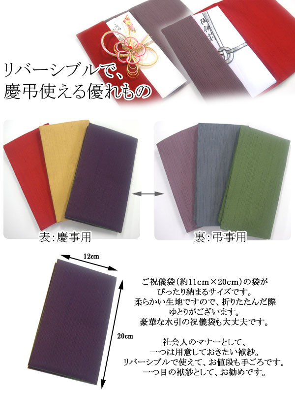 リバーシブルなのでどのタイプも慶弔両用のふくさ(袱紗)です。