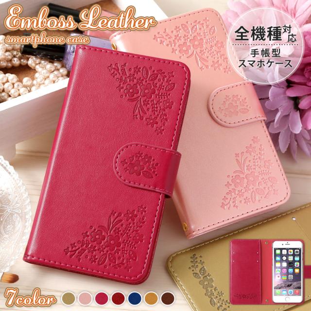 レトロかわいい花柄型押しレザー調手帳型ケースが全7色