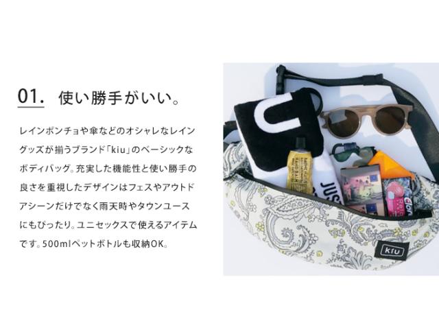メール便送料無料 KiU ウォータープルーフ ボディバッグ 【 鞄 かばん バッグ キウ レディース メンズ サコッシュ ウエストポーチ ユニセックス 大容量 男女兼用 雨 防水 はっ水 アウトドア フェス かっこいい おしゃれ 大きめ きれいめ】