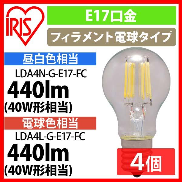 【4個セット】LEDフィラメント電球 ミニクリプトン球 E17 40W相当 440lm 昼白色相当・電球色相当 LDA4N-G-E17-FC・LDA4L-G-E17-FC 全2色 アイリスオーヤマ 安心延長保証対象