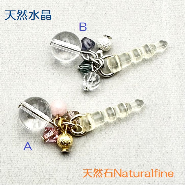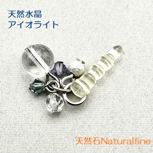 天然水晶にブルー系は、アイオライトそしてピンク系にはサクラジェードがついています。