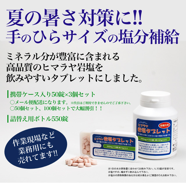 ヒマラヤ岩塩タブレット 携帯ケース入り 50錠×3個セット 【送料無料】(熱中対策グッズ・塩飴・熱中飴)業務用にも人気です!