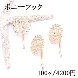 ポニーフック ヘアアクセサリー 座金付 透かしフラワー 23mm ゴールド【100ヶ】
