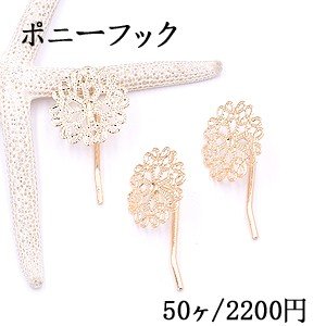 ポニーフック ヘアアクセサリー 座金付 透かしフラワー 23mm ゴールド【50ヶ】