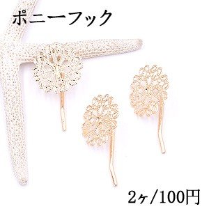 ポニーフック ヘアアクセサリー 座金付 透かしフラワー 23mm ゴールド【2ヶ】