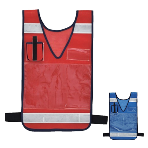 《【反射帯付きベスト】 反射帯付き 工事用品 作業用品 業務用 警備 交通誘導 夜間作業 防犯活動 交通整理 誘導 パトロール 安全チョッキ 反射チョッキ チョッキ 赤 青 レッド ブルー 色》