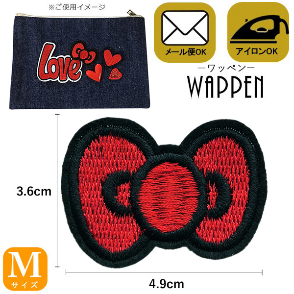 リボン ワッペン 刺繍 アイロン接着 縦3.6cm×横4.9cm Mサイズ アップリケ アイロンワッペン 手芸 WAPPEN デコ母の日 プレゼント ギフト