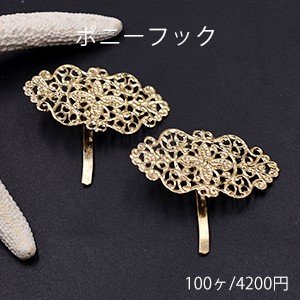 ポニーフック ヘアアクセサリー 座金付 透かしロング 23×45mm ゴールド【100ヶ】