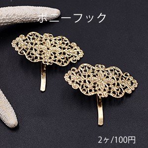ポニーフック ヘアアクセサリー 座金付 透かしロング 23×45mm ゴールド【2ヶ】