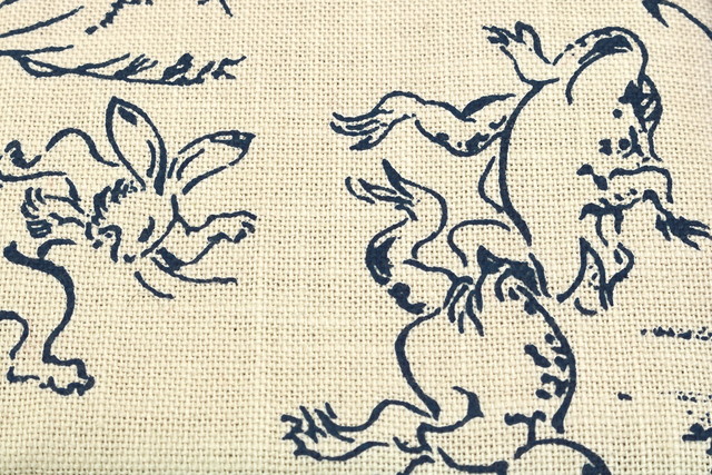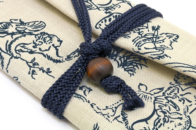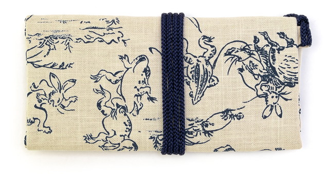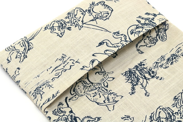 手に馴染む綿素材の生地に伝統的な和柄の鳥獣戯画を施しました。