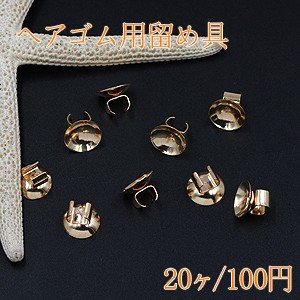 ヘアゴム用留め具 ゴムに付けるメタルパーツ 丸皿 おわん型 10mm ゴールド【20ヶ】