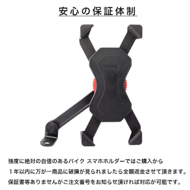 強度に絶対の自信のあるバイク スマホホルダーではご購入から1年以内に万が一商品に破損が見られましたら全額返金させて頂きます。保証書等ありませんがご注文番号をお知らせ頂ければ対応が可能です。
