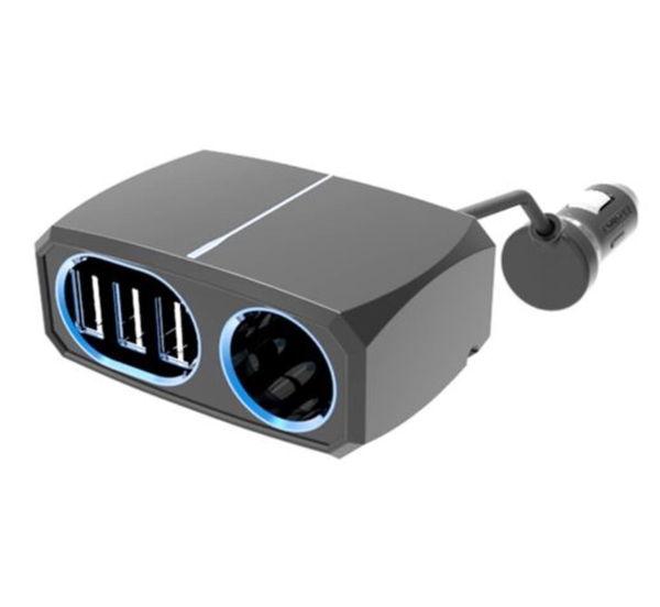 シガーソケット 3連リバーシブルUSBポート 延長セパレート式 コード長1m 自動判定 7.2A