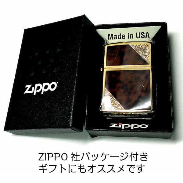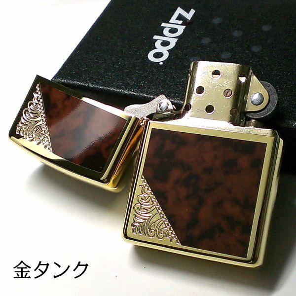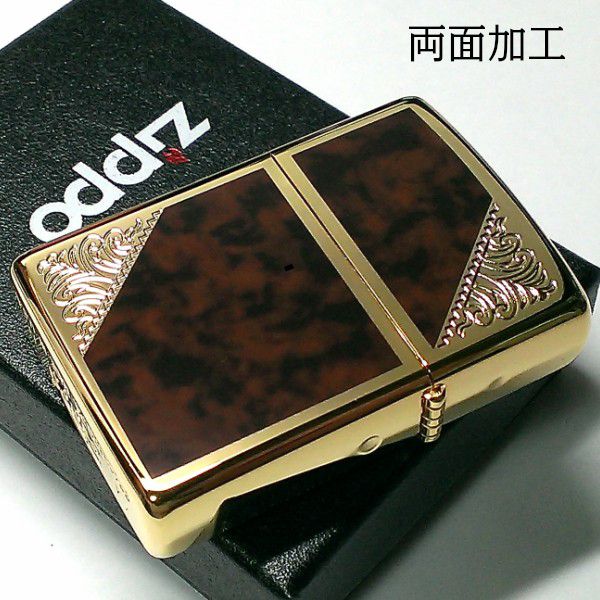 ZIPPO ライター ジッポ ゴールド&ブラウン クラシック アラベスク 両面加工 鼈甲マーブル柄 金タンク かっこいい メンズ ギフト
