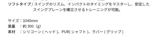 - 注文してから発送対応が迅速で助かります。 早速振って見たのですが思ったより柔らかくしなる スイングスピードを安定させるにはとても良い練習になりそうな商品だと思います。
