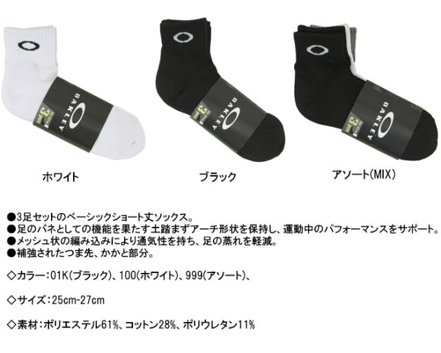 OAKLEY オークリー 3足組ソックス ショートソックス スポーツソックス 93238JP