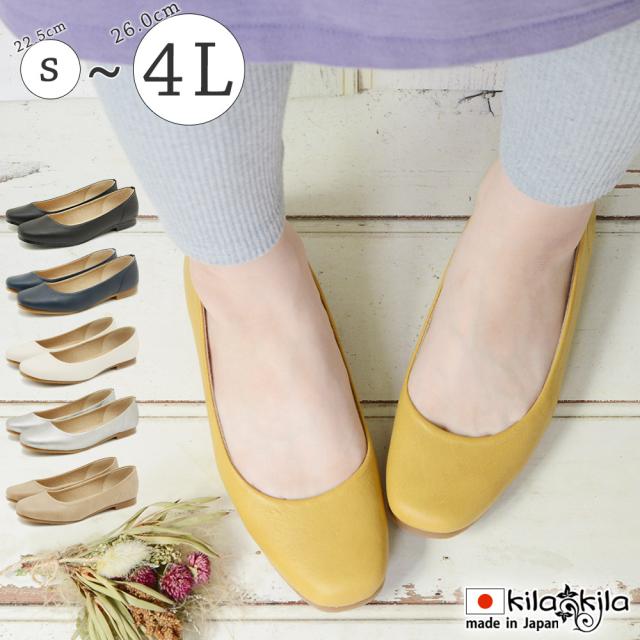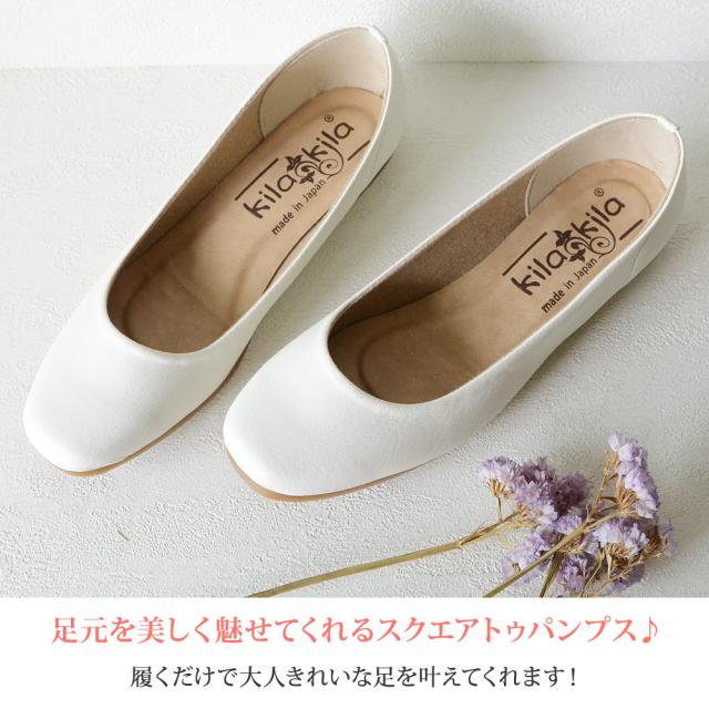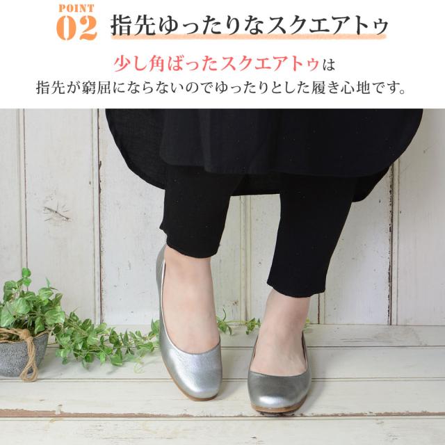 パンプス スクエアトゥ 痛くない 歩きやすい ローヒール 幅広 ぺたんこ 走れる 大きいサイズ フラットシューズ レディース 日本製 靴 春新作