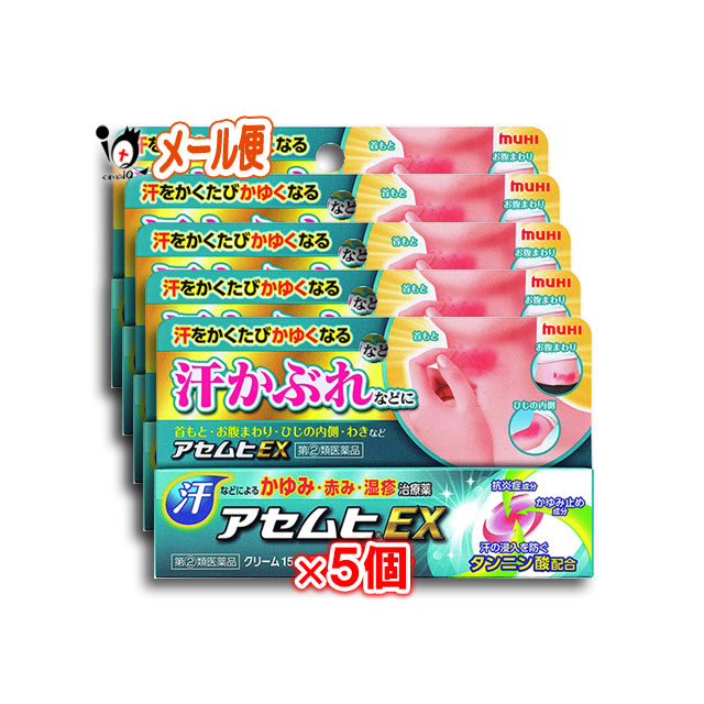 【指定第2類医薬品】★アセムヒEX 15g×5個セット【池田模範堂】汗をかくたびかゆくなる『汗かぶれ』の治療薬