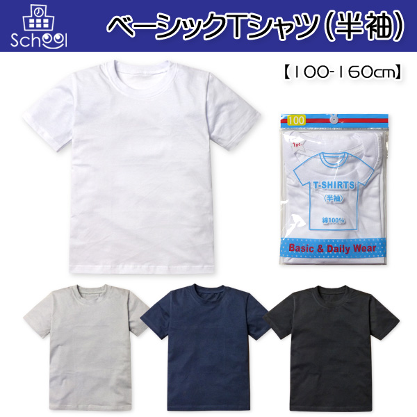 【送料無料】子供服 男の子 女の子 Tシャツ 半袖 丸首 無地 綿100% スクール ベーシック 男児 女児 キッズ ジュニア 100-160cm【メール便対応】