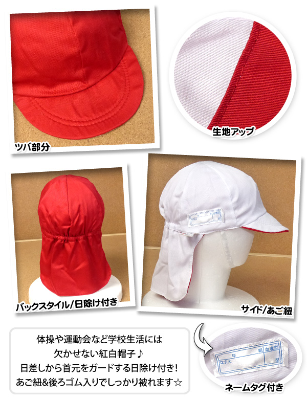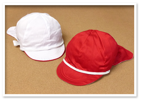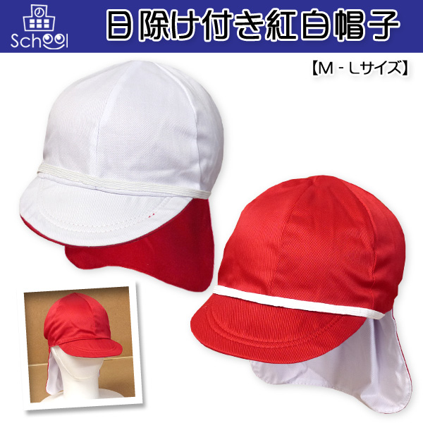 【送料無料】子供 紅白帽 赤白 帽子 スクール 日除けカバー付 あご紐 ネームタグ付 女児 男児 キッズ ジュニア Mサイズ Lサイズ【メール便対応】