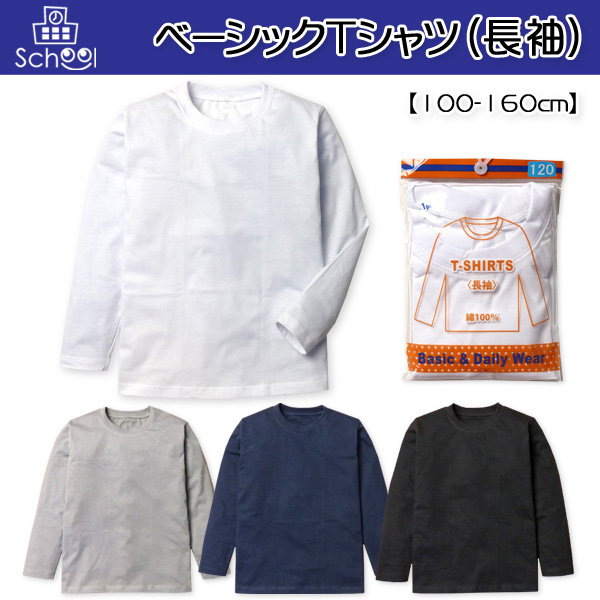 【送料無料】子供服 男の子 女の子 Tシャツ 長袖 丸首 無地 綿100% スクール ベーシック 男児 女児 キッズ ジュニア 100-160cm【メール便対応】