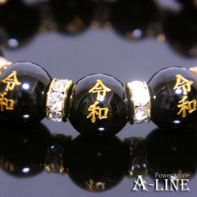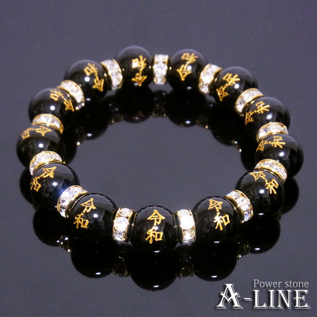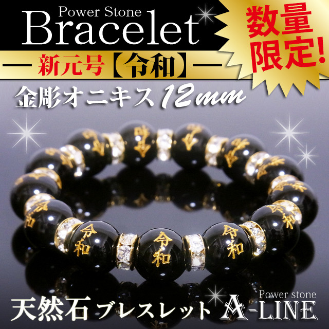 送料無料 パワーストーン ブレスレット 令和金彫りオニキス12mm PW-3386