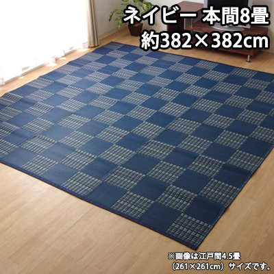 【送料無料】イケヒコ 洗える PPカーペット 『ウィード』 ネイビー 本間8畳(約382×382cm) 2121518