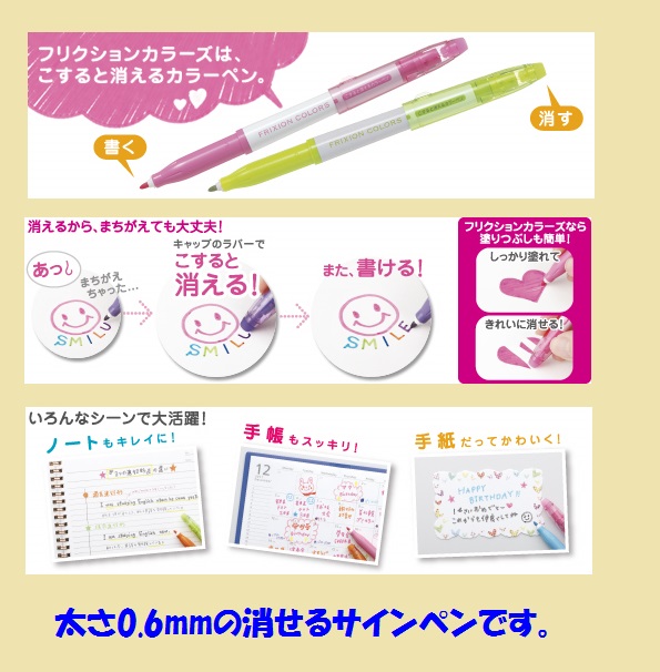 フリクションカラーズ 12色 1580円 SFC120M 消せる フリクション カラーペン サインペン 中字 メール便OK