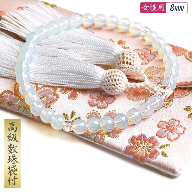 数珠 女性用 ハリオパール 高級 数珠袋 付 8mm オパール 本水晶 念珠 juzu01