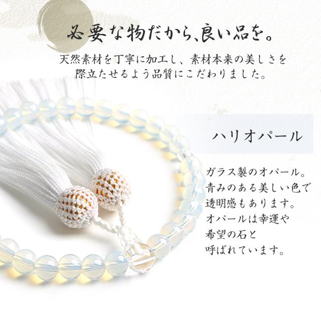 | 商品名 | 数珠 女性用 ハリオパール 高級 数珠袋 付 8mm オパール 本水晶 念珠 |