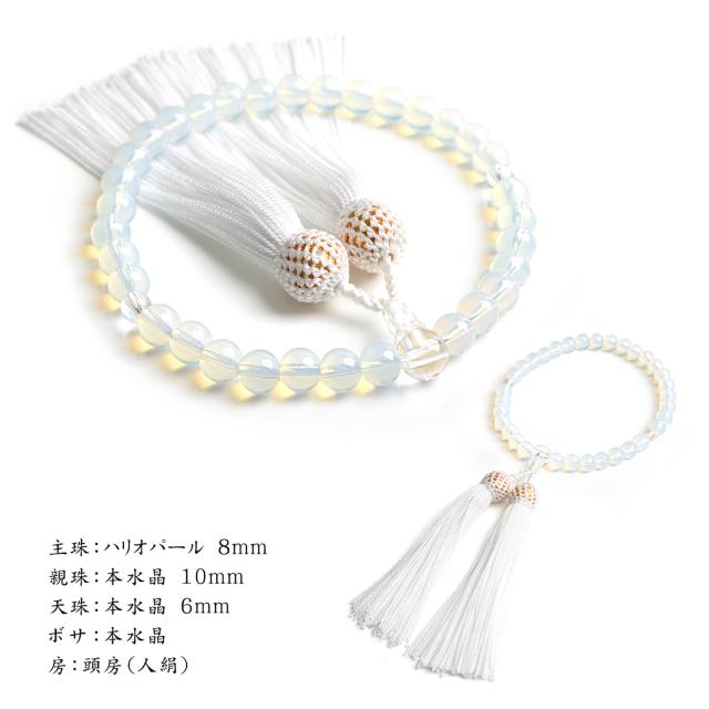 数珠 女性用 ハリオパール 高級 数珠袋 付 8mm オパール 本水晶 念珠