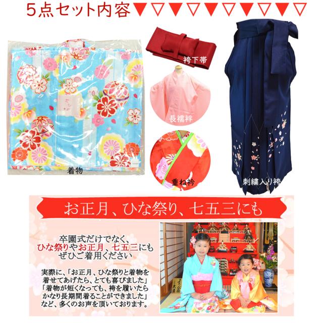着物 袴 子供 5点 セット 卒園式 女の子 はかま フルセット 総柄 小紋柄 刺繍 袴セット 販売 購入 長襦袢 袴下帯 重ね衿 きもの 幼稚園 保育園 卒服 女児 5歳 6歳 7歳 5才 6才 7才 110cm 120cm 130cm キッズ 【 着物 きもの 四つ身 七歳 七才 7歳 7才 女の子 子供
