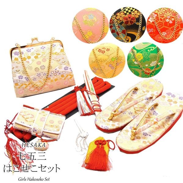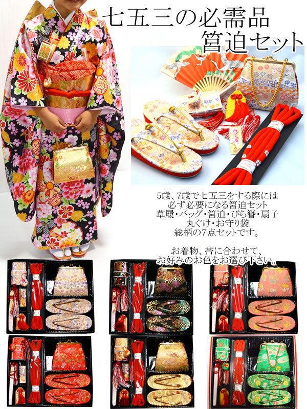 七五三 草履 バッグ はこせこ 7点 セット 総柄 小物 7歳 七歳 【 はこせこ ハコセコ 箱迫 箱せこ 草履 バッグ セット 女の子 子供
