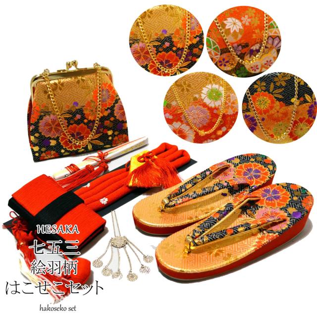 七五三 草履 バッグ はこせこ 7点 セット 絵羽柄 小物 7歳 七歳 【 はこせこ ハコセコ 箱迫 箱せこ 草履 バッグ セット 女の子 子供