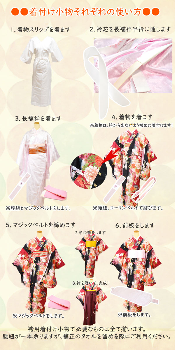 着付け小物 9点 セット 袴 用 初心者 着付け小物セット 着物小物 着付小物 着付 着付け 女性 レディース 和装 卒業岸 謝恩会 着物スリップ 腰紐 コーリンベルト マジックベルト 衿芯 帯板 【 着付 小物 セット 女性 レディース