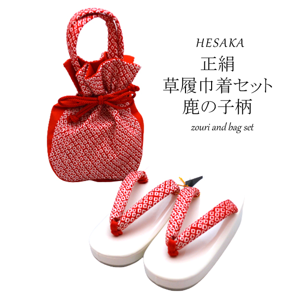 草履 巾着 バッグ セット 正絹 日本製 七五三 鹿の子 絞り柄 ぞうり きんちゃく 7歳 七歳 3歳 三歳 5歳 五歳 【 草履 卒園式 バッグ セット 巾着 女の子 子供