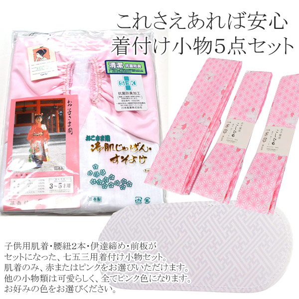 七五三 着付 小物 5点 セット ( 着物肌着 腰紐 2本 伊達締め 帯板 ) 【 着付 小物 セット 女の子 子供