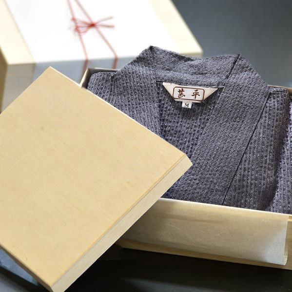 高級木箱か竹かごに入れてお届けする、ギフトに最適な甚平。