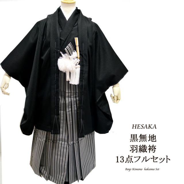 七五三 着物 男の子 黒無地 袴 5歳 13点 セット 五歳 紋付袴 トータル 購入 【 紋付アンサンブル 着物 羽織 紋付 男の子 子供