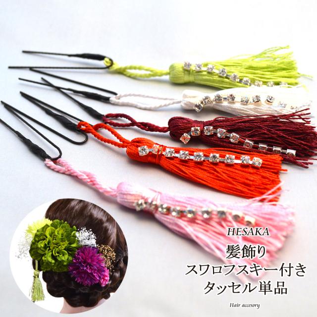 髪飾り スワロフスキー タッセル Uピン 日本製 成人式 振袖 七五三 浴衣 和風 【 かみかざり