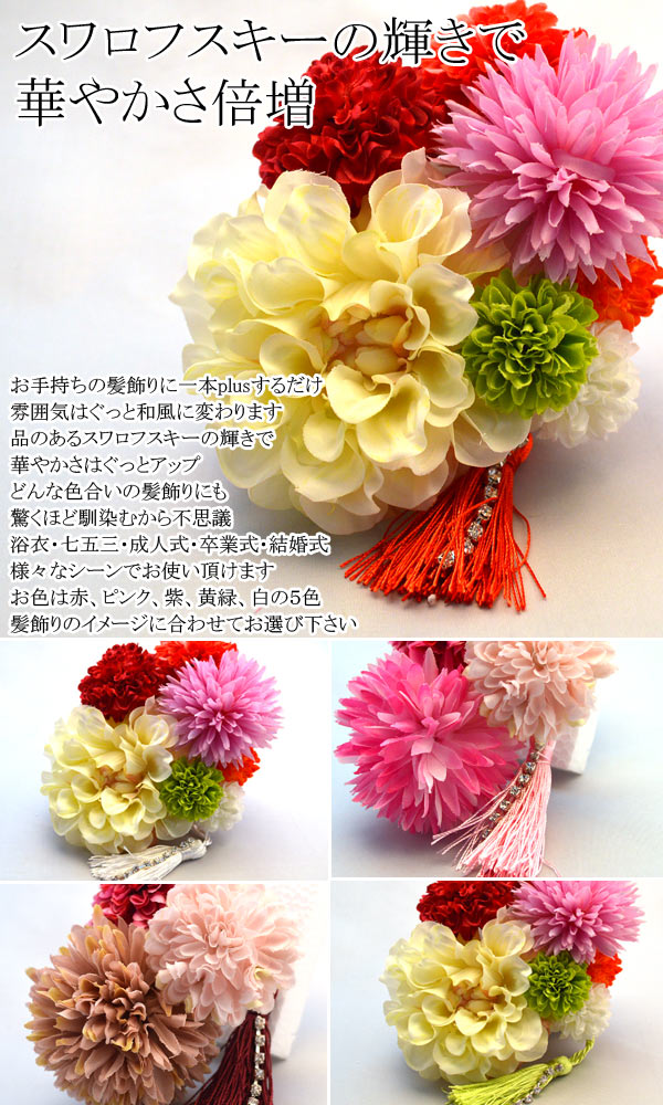 お手持ちの髪飾りに一本+するだけで、雰囲気はぐっと和風に変わります。