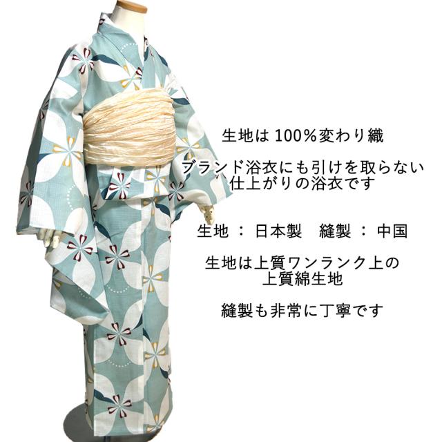 淡い色合いの生地で上品な柄、ブランド浴衣に引けを取らないデザインと生地が人気の浴衣です。