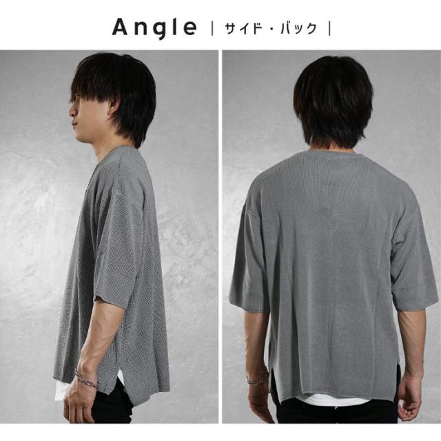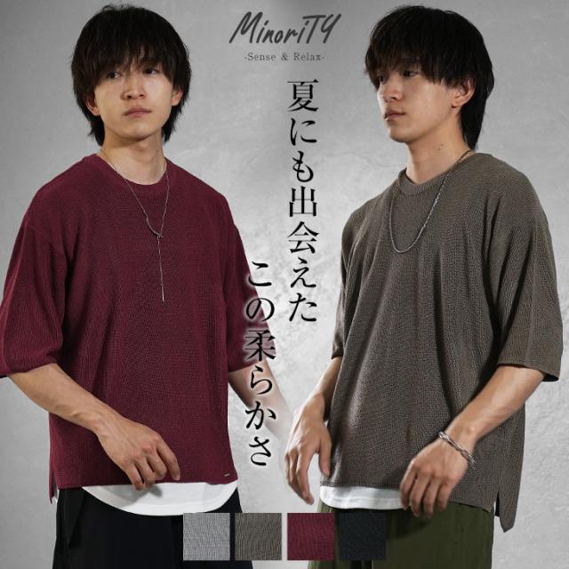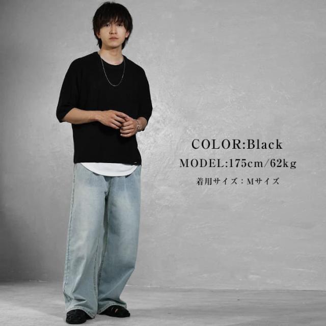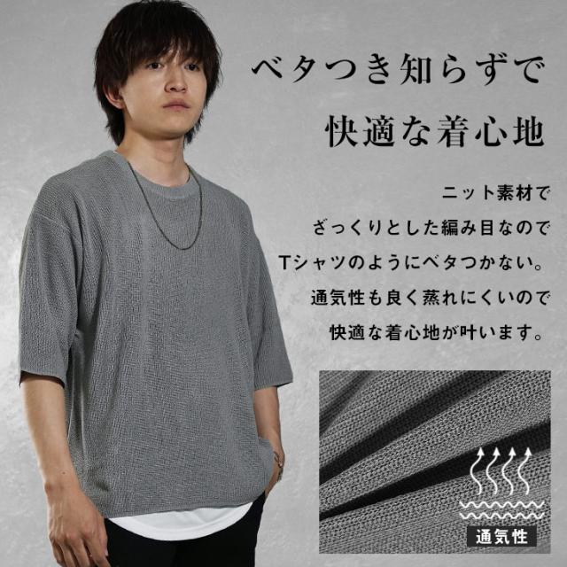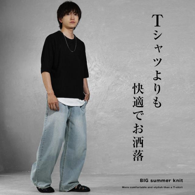 サマーニット メンズ ニット 半袖 ビッグシルエット オーバーサイズ サマーセーター 5分袖 ニットセーター ゆったり 大きいサイズ 半袖Tシャツ ゆるい 無地 レディース ビッグ ビック 韓国 ファッション モード系 春服 春 春新作 hit_d