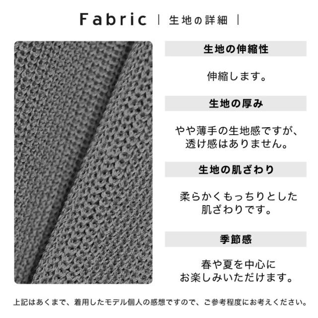 肌触りは柔らかくふんわりとした素材を使用。ざっくりとした網目なので通気性も抜群で、汗をかいてもベタつきにくいさらっと感も嬉しいポイントです◎