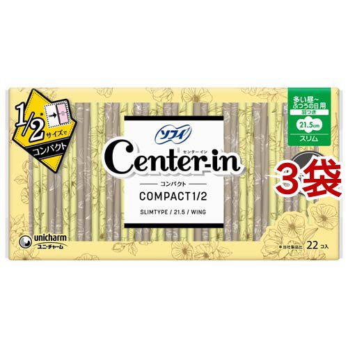 センターイン コンパクト 1/2 多い昼 ふつうの日用 無香料 羽つき 21.5cm (22個*3袋セット)[生理用品 その他]