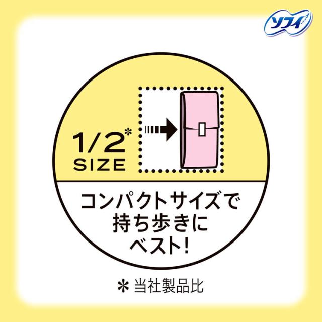 ●普通のスリムナプキンの1/2※のコンパクトサイズだから、持ち歩きにベスト!※メーカー製品比
