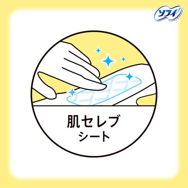 ●ふっくらと肌にやさしい質感の肌セレブシートを採用。身体のカタチに合わせてフィットする独自構造で、スキマを作らず経血をたっぷり吸収するから、スリムでも安心です。