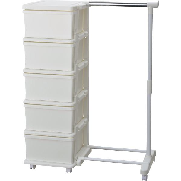 引出し収納チェスト5段(パイプハンガー付) ホワイト 4528302481014【送料無料】